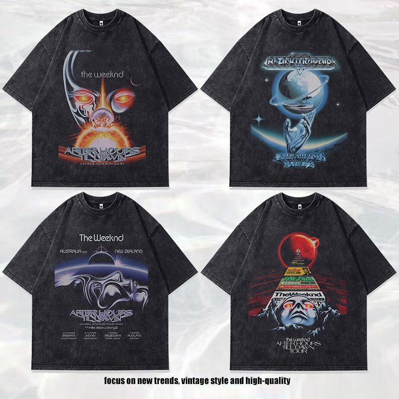 Europäisches Und Amerikanisches High Street Bedrucktes T-Shirt Gewaschen Retro Und Alt 230G Reine Baumwolle Halbärmel Vintage Herren Und Damen