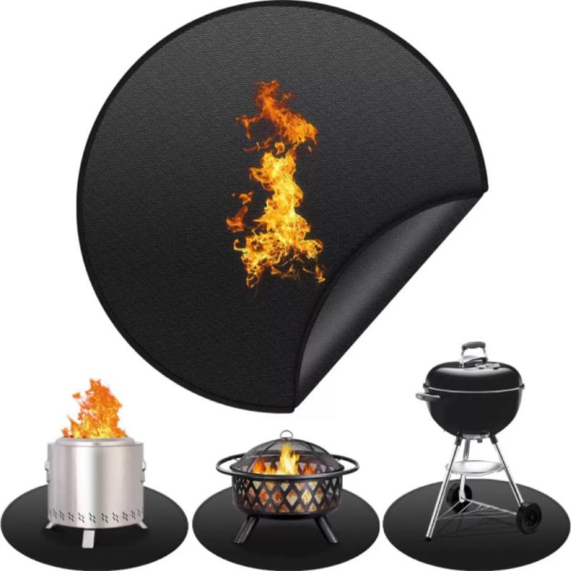 1 Stück runde feuerfeste BBQ-Matte für den Außenbereich, doppelseitiges hitzebeständiges Glasfaser-Gewebe, tragbarer & wiederverwendbarer Deck- und Terrassenschutz