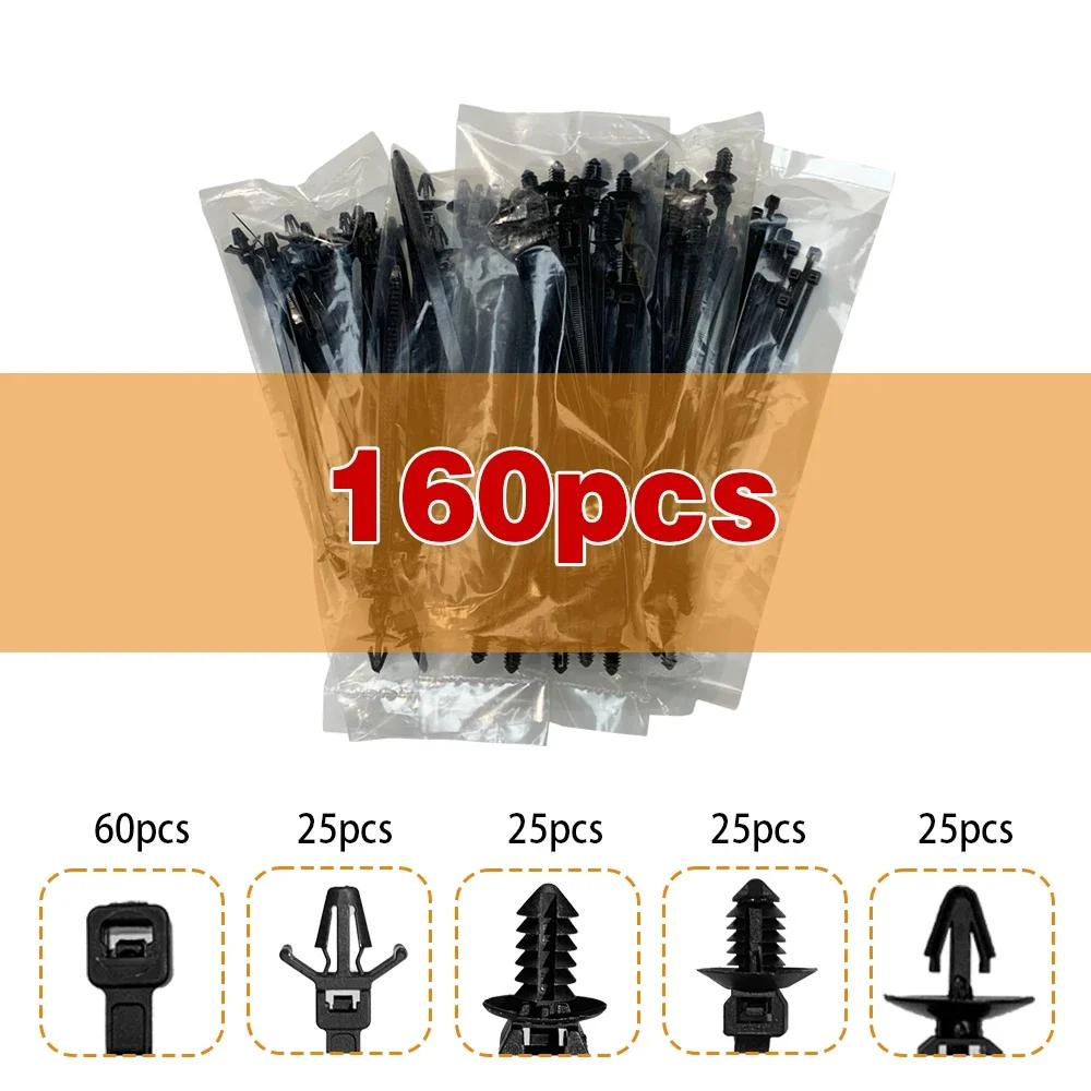 160PCS Car Wire Harness Fastener Tie Cars Corrugated Pipe Cable Ties Wrap Cable Clamp Clips Management Car Wire Organizers