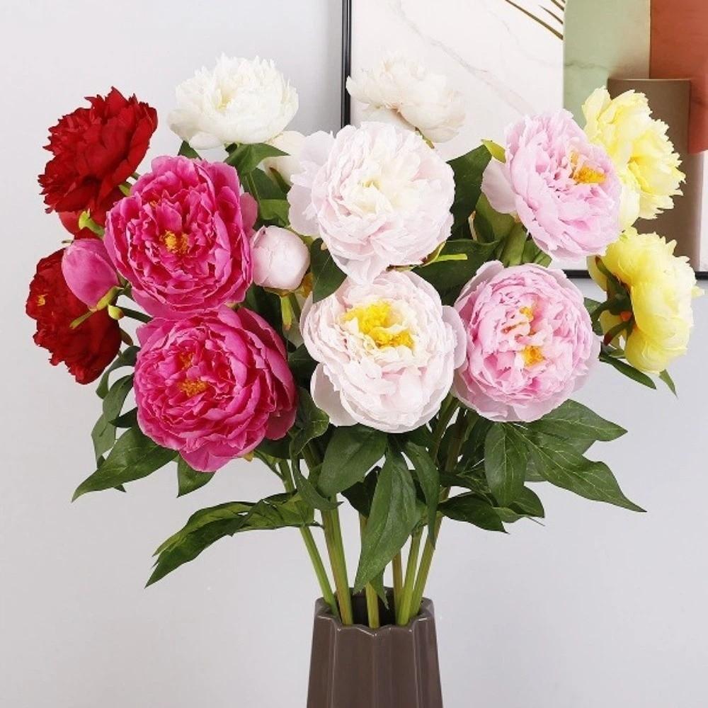 Real Touch Artificial Peony Flower 3 Heads Cotton Rose Fake Flower Wedding Party