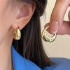 Goldene doppellagige runde Creolen für Damen, Vintage, übertriebene C-Form, Hängeohrringe, Trendiger Statement-Schmuck, Geschenk