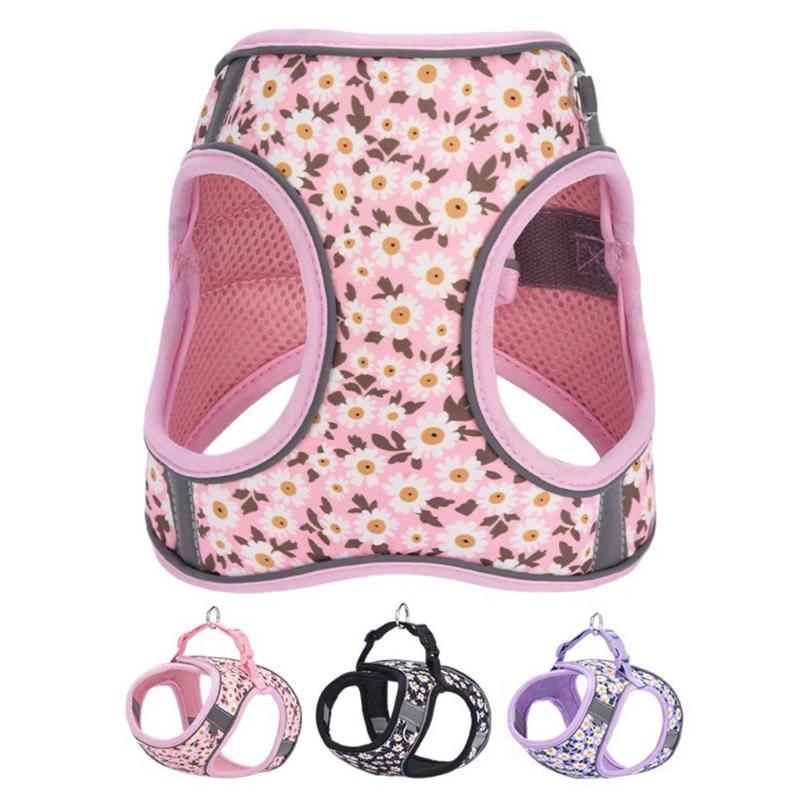 Durable Large Dog Harness for Small Dogs No Pull Adjustable and Breathable Puppies Flower Vest