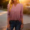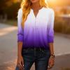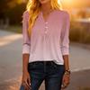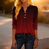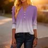Modisches lässiges Damen-T-Shirt-Top mit Farbblock-Gradienten-Print, V-Ausschnitt, Knopfleiste und Dreiviertelärmeln