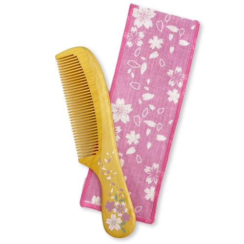 Dieser Buchsbaumkamm schützt auch effektiv vor UV-Strahlen.. UV-Strahlen können das Haar schädigen und es trocken und brüchig machen.. Großzügig mit natürlichem Kamelienöl angereichert, verleiht dieser Kamm Ihrem Haar Glanz und Feuchtigkeit und hinterlässt ein glattes Finish.. Dieser Buchsbaumkamm ist groß und liegt gut in der Hand. Es ist perfekt nicht nur zum Kämmen, sondern auch zum Stylen und sorgt für ein glattes, ordentliches Aussehen.. Es wird besonders für Menschen mit langem oder voluminösem Haar empfohlen.. Es wird Ihre tägliche Haarpflege sicher angenehmer machen.. """Bisugata no Wa Kushi"" wird unter den Buchsbaumkämmen hoch bewertet, und seine Qualität wird von vielen Nutzern bestätigt, was es uns ermöglicht, hochwertige Buchsbaumkämme zu einem erschwinglichen Preis anzubieten.". Genau wie seine teureren Gegenstücke hat dieser Kamm die gleichen positiven Auswirkungen auf das Haar und ist sehr langlebig, sodass er bei guter Pflege ein Leben lang halten kann.. Dieser Buchsbaumkamm macht die Haarpflege angenehmer und veredelt Ihre täglichen Frisuren.. Es wird außerdem mit einem niedlichen Gaze-Etui mit japanischem Muster geliefert.. Die Hülendesigns umfassen Kamelie, Kirschblütenhase, Blume, Blumenkatze und Süßigkeit.. Diese Designs sind ein wunderbares Souvenir oder Geschenk. Es ist auch ein perfektes Geschenk für einen besonderen Menschen; Dieses Set mit einem wunderschönen japanischen Muster und einem hochwertigen Buchsbaumkamm wird dem Beschenkten Freude und Begeisterung bereiten.