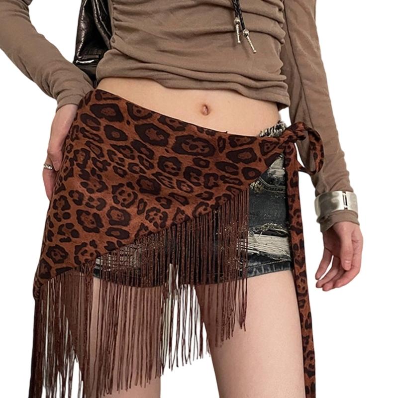 Animal Pattern Tassels Detail Hip Wrap Curtain Triangular Stretchable Belt Waistband Comfortable Daily Party Wear