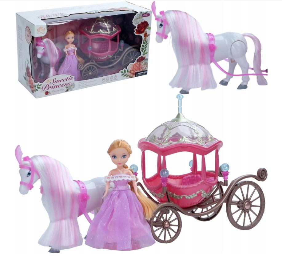 Rosa Einhorn B/O + Kutsche + Puppe 18cm 5472