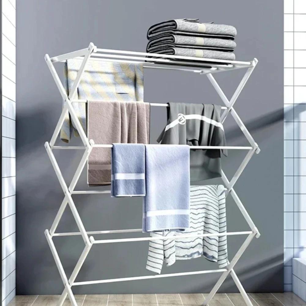 Simple Storage Rack Foldable Bedroom Drying Racks Floor Standing Balcony Clothes Hangers Scalable and Convenient Clothes Hanger