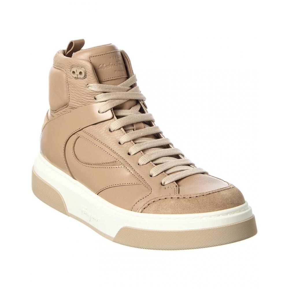 Cassio Leather High-Top Sneaker In Bone Leather And Tonal Hardware With Gancini Accents And Suede Toe
