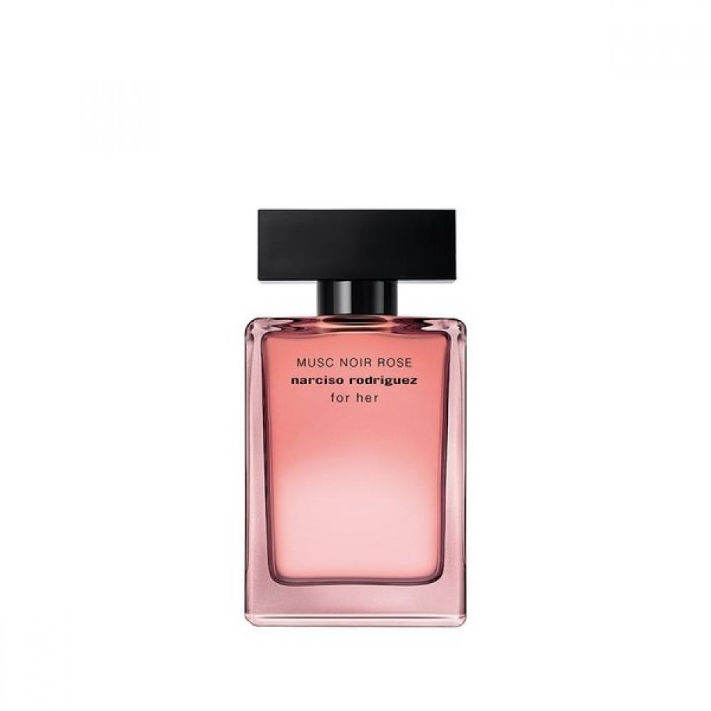 Narciso Rodriguez Musc Noir Rose for Her Eau de Parfum 50ml is an amber floral perfume for women crafted by perfumer Sonia Constant in 2022. It highlights sensuality with an iconic musk scent combined with the notes of tuberose, rose, and jasmine petals, emphasizing a modern chypre oriental character. The fragrance opens with a rich plum and pink pepper aroma, gradually transitioning into a soft and warm essence.