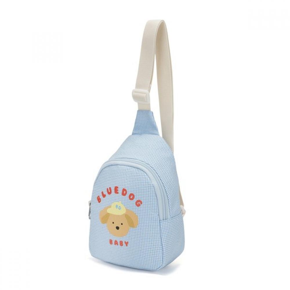 (The Blue) Check Sling Bag is made from synthetic fabric and features the unique dog character print of Blue Dog Baby. This product is a bag for infants and children, designed for ease of everyday use with its convenient structure and lightweight design.