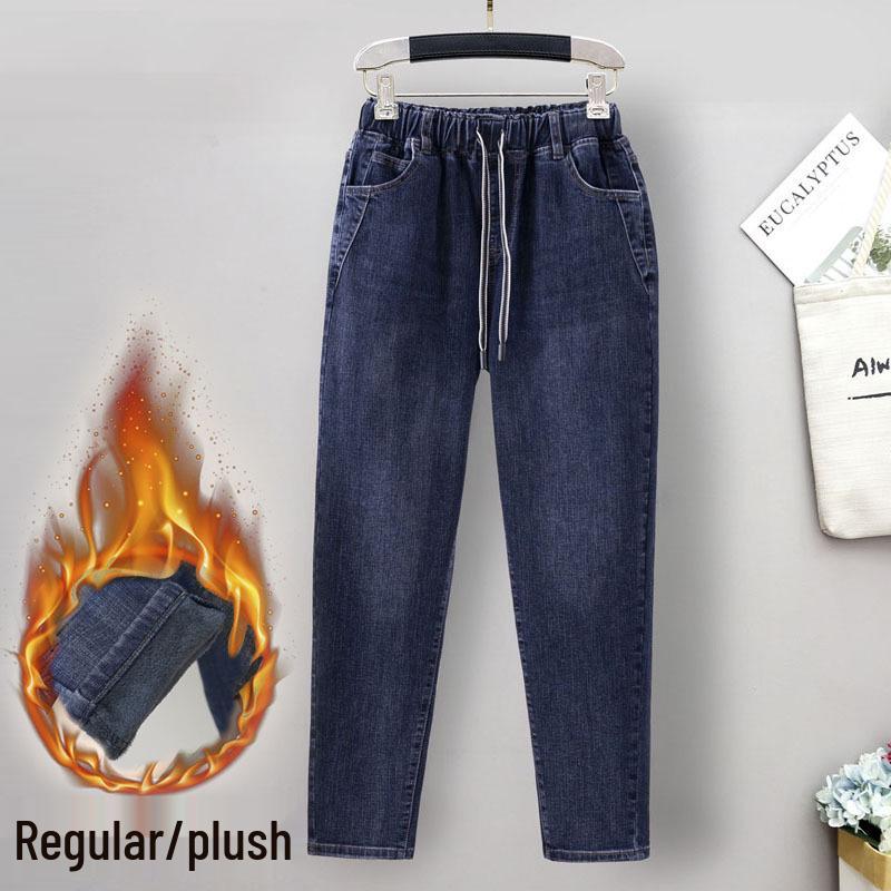 Erleben Sie ultimativen Komfort und Stil mit diesen High-Waist-Jeans für Damen in Übergröße mit Fleece-Futter.. Hergestellt aus hochwertigem Baumwollmaterial, sorgen diese Jeans für ein weiches und angenehmes Gefühl auf der Haut.. Das Fleece-Futter sorgt für zusätzliche Wärme und macht sie perfekt für kühlere Jahreszeiten.. Mit einem hohen Bund und einem elastischen Bund designed, bieten diese Jeans eine schmeichelhafte Passform und ermöglichen gleichzeitig Bewegungsfreiheit.. Das lässige, lockere Design sorgt für einen schlankmachenden Effekt, ideal für den Alltag.. Funktionale Taschen verleihen eine praktische Note und machen diese Jeans sowohl stilvoll als auch bequem.