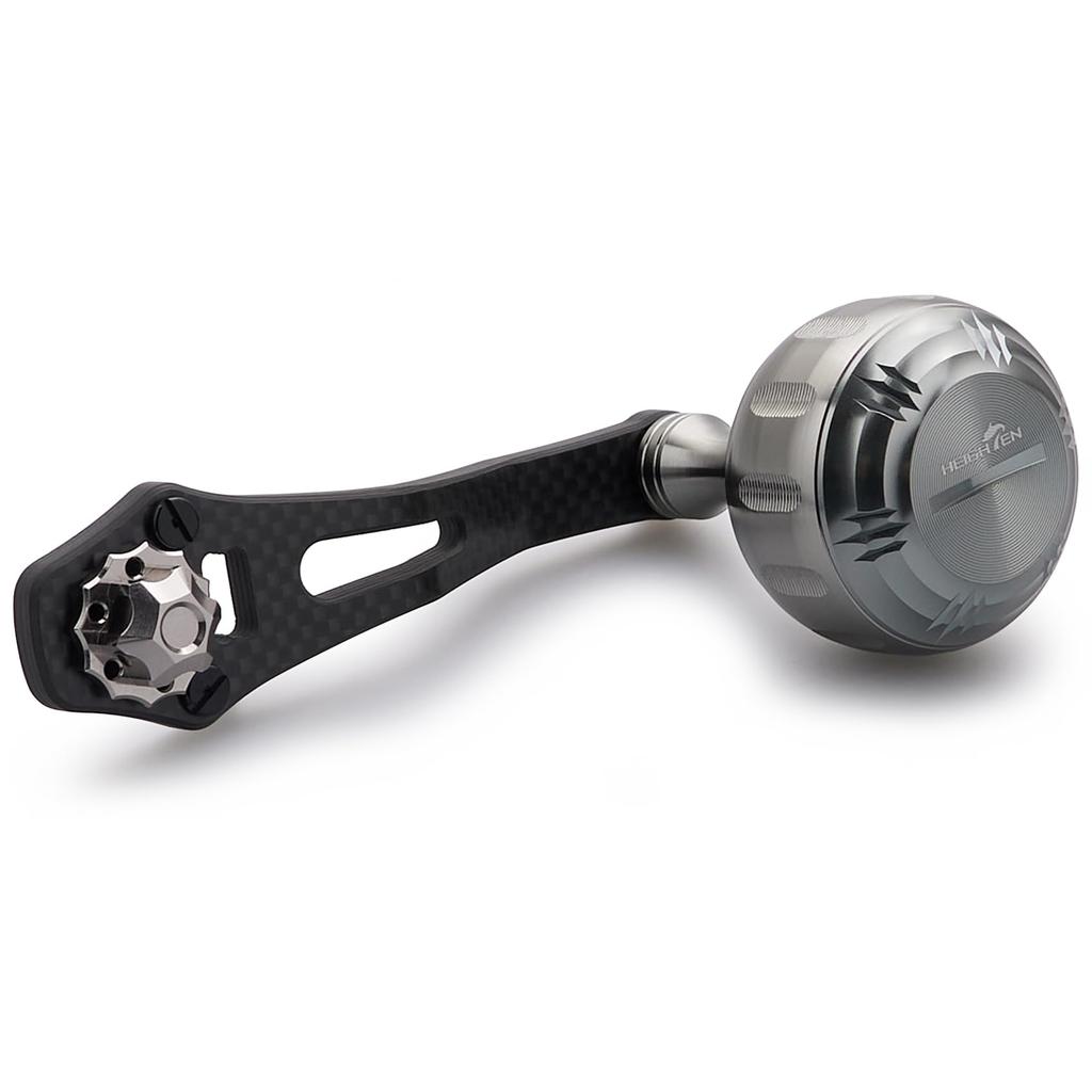[Features] Lightweight, durable handle made of Toray carbon fiber with adjustable 60mm/70mm shaft center distance, and a 35mm diameter aviation aluminum handle knob. [Size] Knob diameter 35mm, handle shaft center distance 60/70mm adjustable. [Weight] 29g. [Materials] Handle - Toray carbon fiber, Knob - aviation aluminum. [Accessories] Two 8x5mm nuts, two 7x4mm nuts, and one conversion sleeve. [Compatible Models] Compatible with DAIWA, SHIMANO, and ABU GARCIA baitcasting reels with 4x7mm and 5x8mm mounting holes.