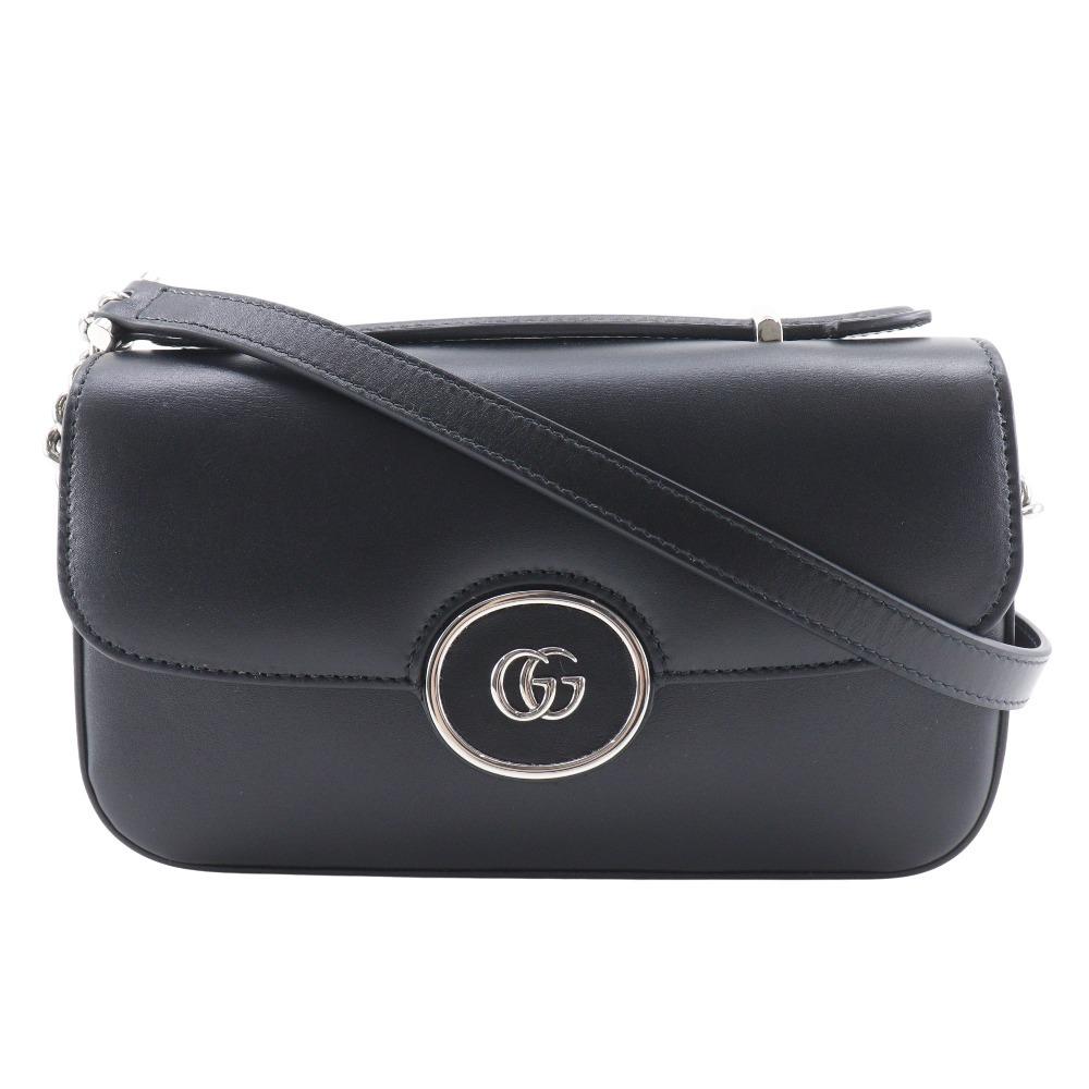 GUCCI Petit GG Shoulder Bag 739722 Double G 2WAY black leather Women Used