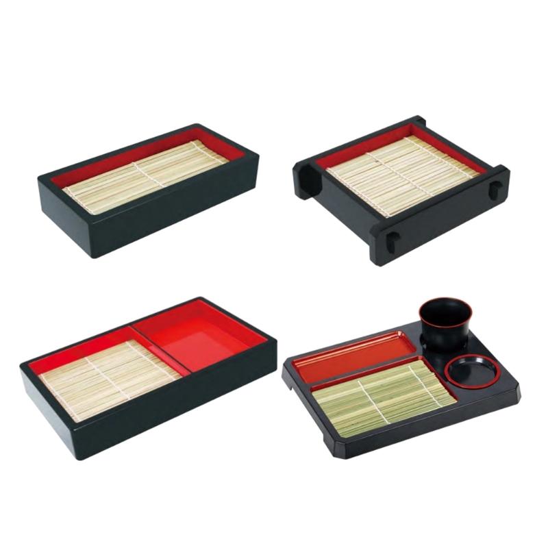 Cold Noodles Plate Plastic Food Plate with Bamboos Mat Food Snacks Dishes Serving Platters Easy to Clean Food Platter