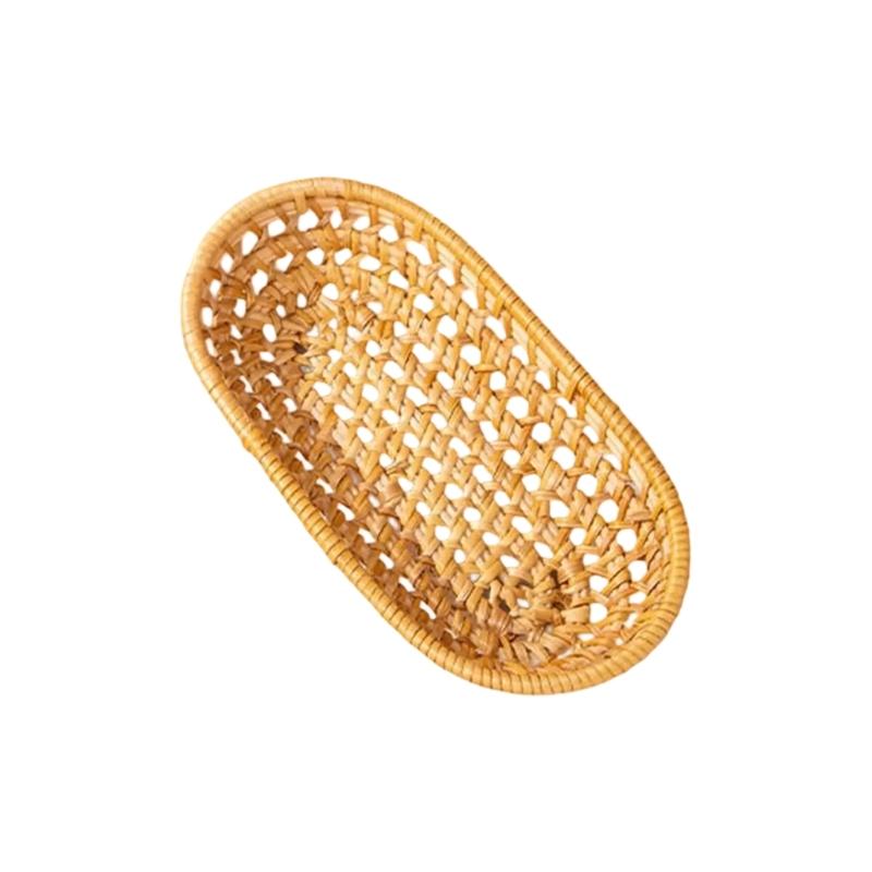 Hand woven Rattan Basket for Desk Organization Desktop Small Item Organiser Multifunctional Serving Plate for Fruit