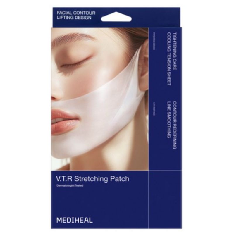 Sculpt your perfect jawline with professional lifting care! MEDIHEAL presents the VTR Stretching Patch, a specialized home-care solution designed to define and firm the "V-Zone" (jawline and chin). 🌟 Made with high-tension, high-elasticity fabric, this patch physically pulls and holds sagging skin in place for a visible lifting effect. Infused with a potent essence of Caffeine and Collagen, it helps to reduce puffiness and restore skin elasticity, giving you a sharp, smooth, and youthful facial contour. ✨