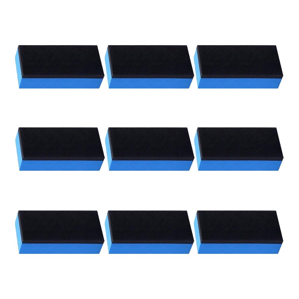 [Product Specifications] Pack of 9 car wash sponges.Product dimensions: 70x30x15mm.Weight: approx. 1g.Color: blue black.[Double-layer structure design] Made of polyurethane sponge + EVA sponge, made of EVA material, the sponge layer is delicate and soft, has good water absorption, is clean, does not damage glass or car lacquer, and can be used repeatedly.The polyurethane sponge layer has excellent water absorption ability, allowing greater use of the coating agent.High-quality materials make it durable and make construction work more efficient and easier.[Lightweight and Easy to Carry] This car wash sponge is compact, space-saving, and easy to carry.It can be used not only for car rearview mirrors, doors, lights, wheels, and bodies, but also for interior items such as steering wheels and seats.This practical car wash sponge brings endless convenience to your life.[Easy to use] The EVA sponge layer is made of a hard material that is difficult to deform and is designed to be easy to grip.It can be used in combination with glass cleaning agents and composite abrasives, and can be used not only for car washing but also for various purposes such as furniture cleaning.[Scope of application] Can be used not only for coating cars and motorcycles, but also for cleaning leather products inside cars.Can be used for glass cleaning, oil film removal, car interior oil removal, leather goods cleaning, faucets, watch parts maintenance, metal fitting polishing, etc.