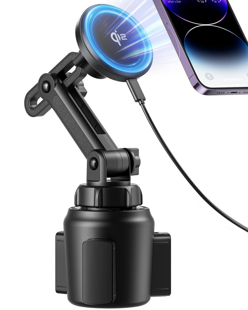 EnGMOLPHY MagSafe Kompatibel Kabellos Neueste Qi2 Magnetisch Auto Magnetisch Kabellose Ladebecher Bis zu 15W Schnell Verstellbar Kompatibel mit iPhone MagSafe
