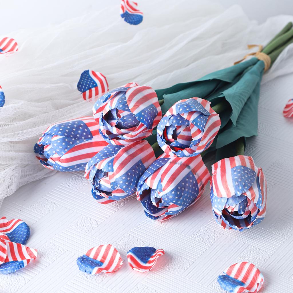 Künstliche Sträuße im Thema der amerikanischen Flagge, Festliche Dekorationen, Florale Kunst aus Stoff.