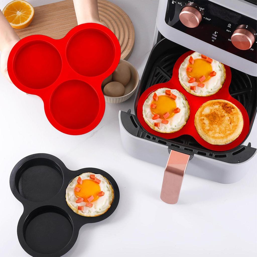 Silikonform für Heißluftfritteuse 3-Kammer Kochform Silikon Heißluftfritteuse Tassen für kleine Kuchen Puddings Hamburger Frühstück