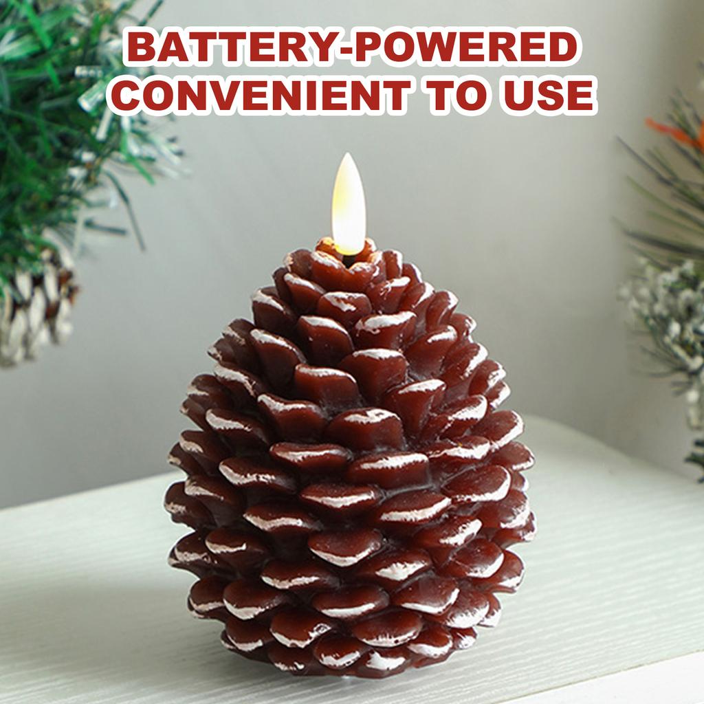 Set aus 2 LED-Kiefernzapfenkerzen Kiefernzapfenförmige Realistische Wachskerzen Flammlose Kerze für Weihnachtsdekoration