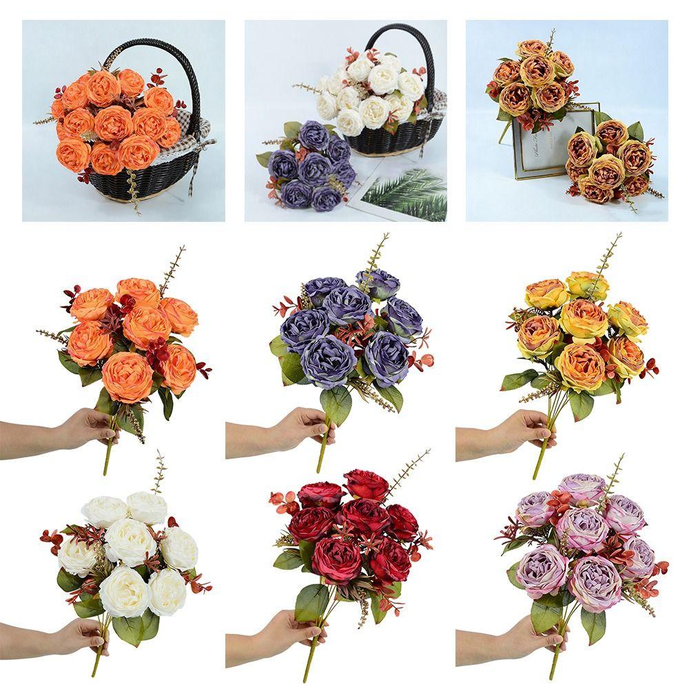 7 Heads Simulation Flower Rose Silk Petals Faux Flower Holding Bouquet Flower Wedding Ornament