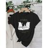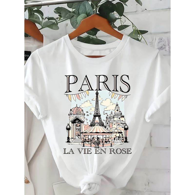 Europäische Größen Elegantes Damenhemd, Weihnachts-Paris-Print-T-Shirt, Lässiges Kurzarm-Top für Frühling und Sommer, Damenmode Rundhals-T-Shirt