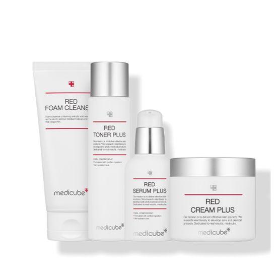 Red Toner & Serum: Water (Aqua), Butylene Glycol, Niacinamide, Succinic Acid, 1,2-Hexanediol, Panthenol, Allantoin, Ethylhexylglycerin, Disodium EDTA, Plant Extracts (Chamomile, Centella Asiatica, Green Tea, etc.). Red Cream: Water (Aqua), Glycerin, Butylene Glycol, Niacinamide, Succinic Acid, Betaine, Panthenol, 1,2-Hexanediol, Adenosine, Allantoin, Caprylic/Capric Triglyceride, Hydrogenated Lecithin, Ethylhexylglycerin, Disodium EDTA, Plant Extracts (Chamomile, Centella Asiatica, Green Tea, etc.). Red Foam Cleanser: Water (Aqua), Glycerin, Myristic Acid, Stearic Acid, Potassium Hydroxide, Lauric Acid, Palmitic Acid, Cocamidopropyl Betaine, Butylene Glycol, Sodium Chloride, Allantoin, 1,2-Hexanediol, Disodium EDTA, Fragrance (Parfum). Succinic Acid Pads: Water (Aqua), Butylene Glycol, Niacinamide, Succinic Acid, 1,2-Hexanediol, Panthenol, Allantoin, Polyglyceryl-10 Laurate, Tromethamine, Ethylhexylglycerin, Disodium EDTA, Plant Extracts (Chamomile, Centella Asiatica, etc.).