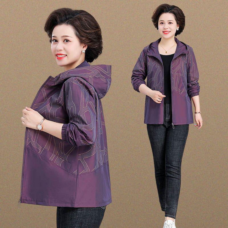 Plus Size Windbreaker Jacket for Moms - Spring & Autumn Loose Fit for Middle-aged & Elderly Women.