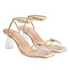 Shoetopia Damen Transparente Blockabsatz-Sandalen | Stilvolle Knöchelriemen-Partyschuhe mit Strass-Schleifen-Detail