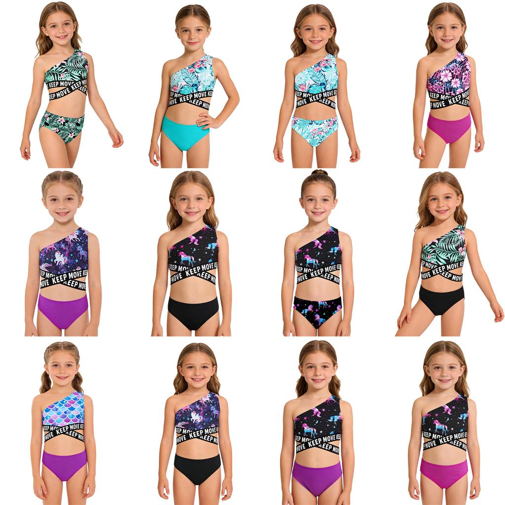 2 Stück Kinder Mädchen Badeanzug Bedruckte Crop Tops und Slips Set Strand Schwimmen Badeanzug