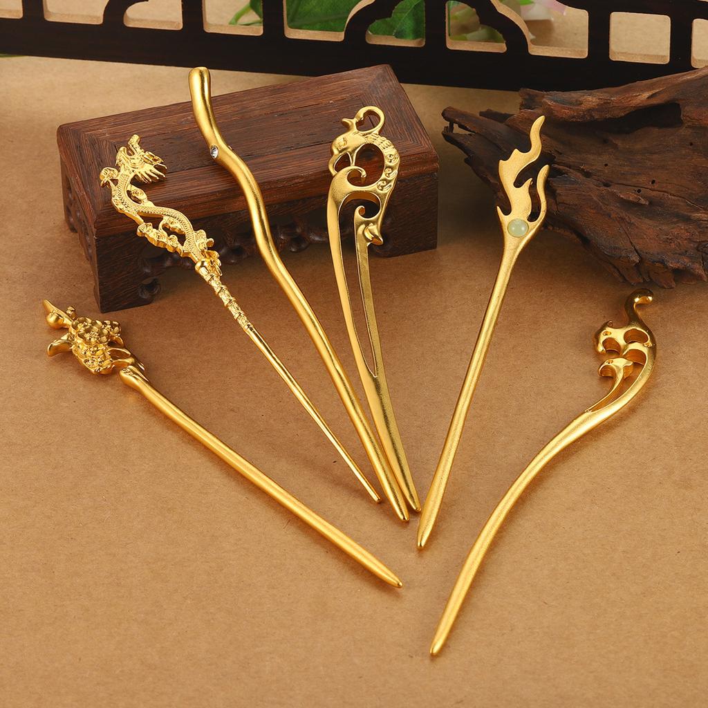 Antique hair accessories new hair fork high-end Hanfu accessories high-end jewelry hollow dragon geometric auspicious cloud hairpin