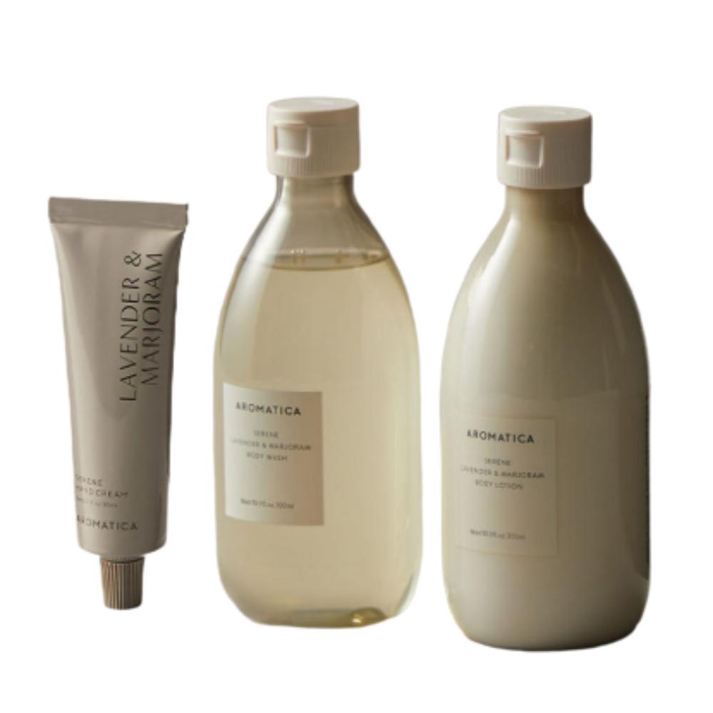 AROMATICA Serene Body Care Hydration Set (Body Wash 300ml + Lotion 300ml + Hand Cream 30ml) Deep Relaxation Body Ritual Kit