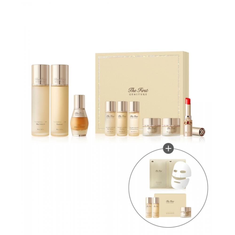 OHUI The First Generation Signature Special Set is a premium anti-aging skincare line designed to promote skin regeneration and recovery, strengthening the skin's innate power to keep it youthful and healthy over time. This set includes key items such as The First Generation Skin Softener, Emulsion, and Ampoule Advanced, featuring proprietary ingredients like The First Generation Complex and Signature 83 Cell™, providing skin elasticity, texture improvement, and anti-aging effects.