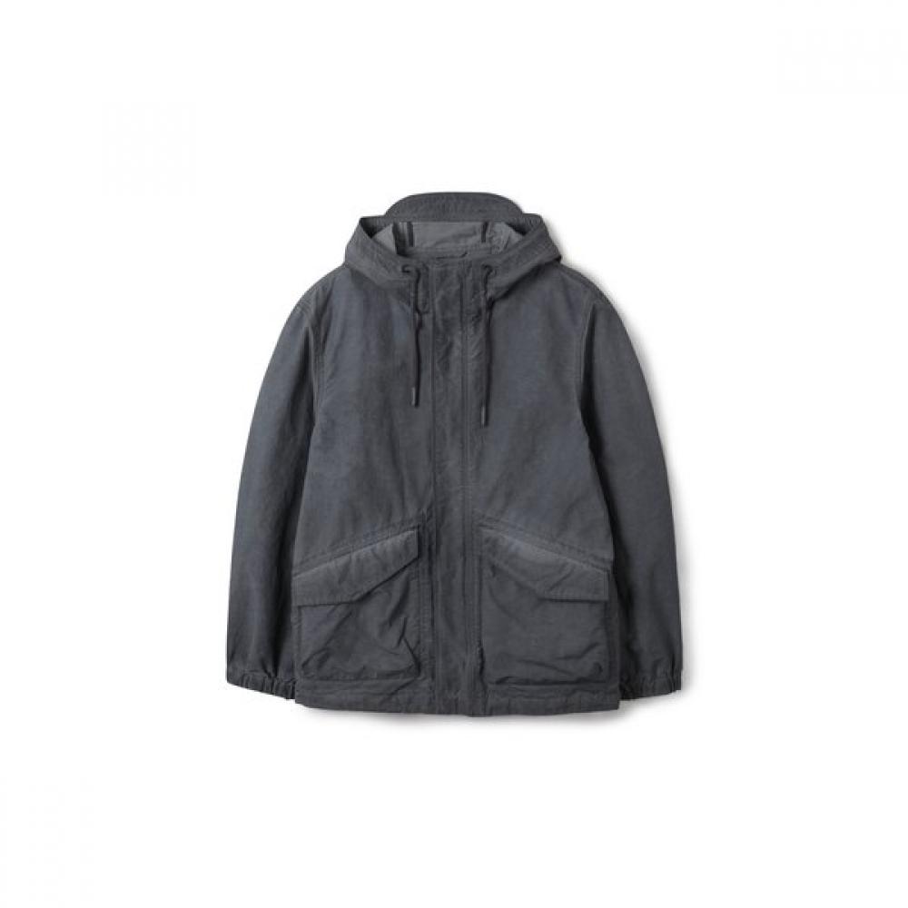 The [series;] Dying Short Hood Coat (SACAS25111CHX) features a short military-style design with an integrated hood, where strings are included in the hem and hood for size adjustment. Made from a high-quality blend of nylon and cotton, it boasts excellent durability and minimal deformation during extended wear. Each product undergoes initial fabric dyeing followed by garment dying to achieve a unique color palette. Additionally, the peach finish provides a smooth and luxurious feel. Its versatility allows for various styling options, suitable for late spring to summer.