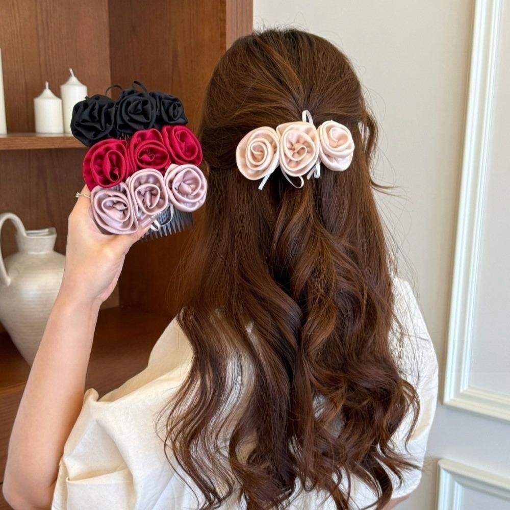 Solid Color Floral Hair Comb Headwear Chignon Hair Clip Sweet Flowers Hairpin Women
