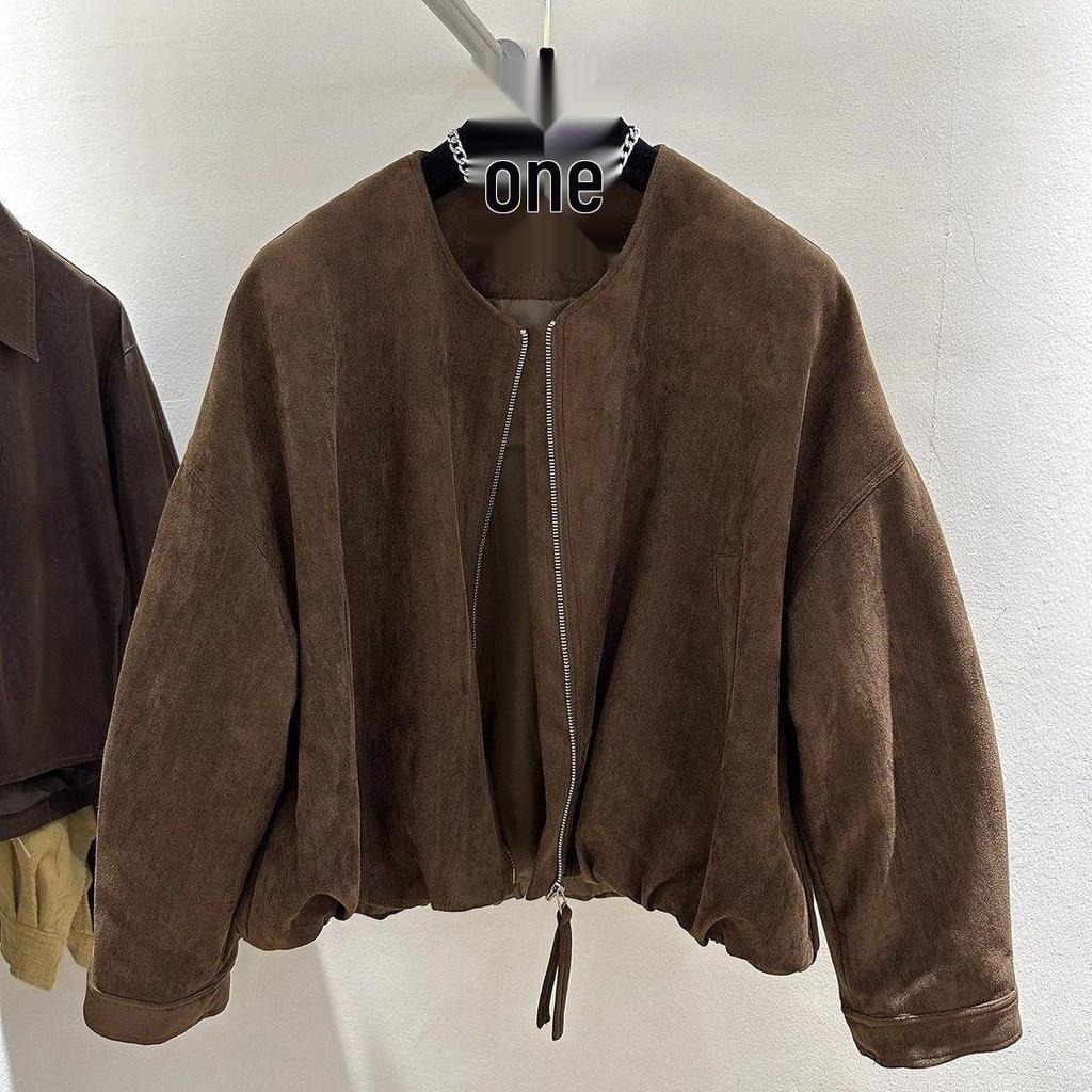 Women's European-Style Faux Suede Baseball Jacket - Petite, Stylish, and Versatile