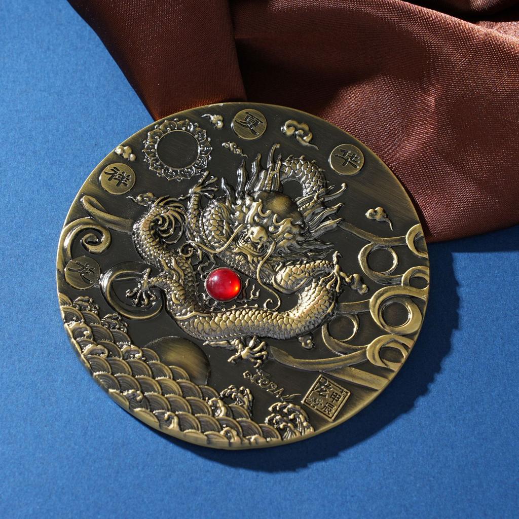 Commemorative coins for the the Year of the Loong, Chinese auspicious dragon, high-end zodiac coins, and large bronze medallions