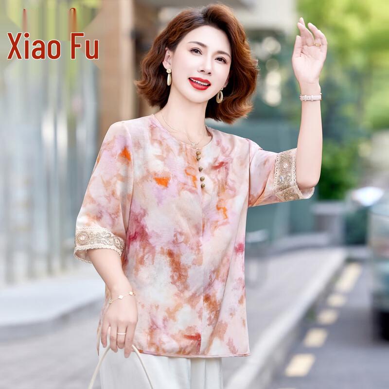 Elegant Floral Print Chinese Style Half-Sleeve Blouse