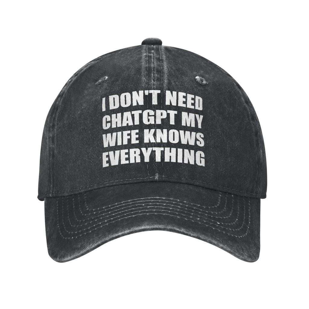 I Don't Need ChatGPT My Wife Knows Everything Meme Washed Baseball Cap Casual Sun Hip Hop Hats Skate Baseball Caps