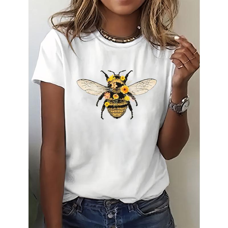 Damen Inspirierendes Bienenmotiv T-Shirt Lässig Rundhals Kurzarm Ganzjahres Tier Muster Oberteil