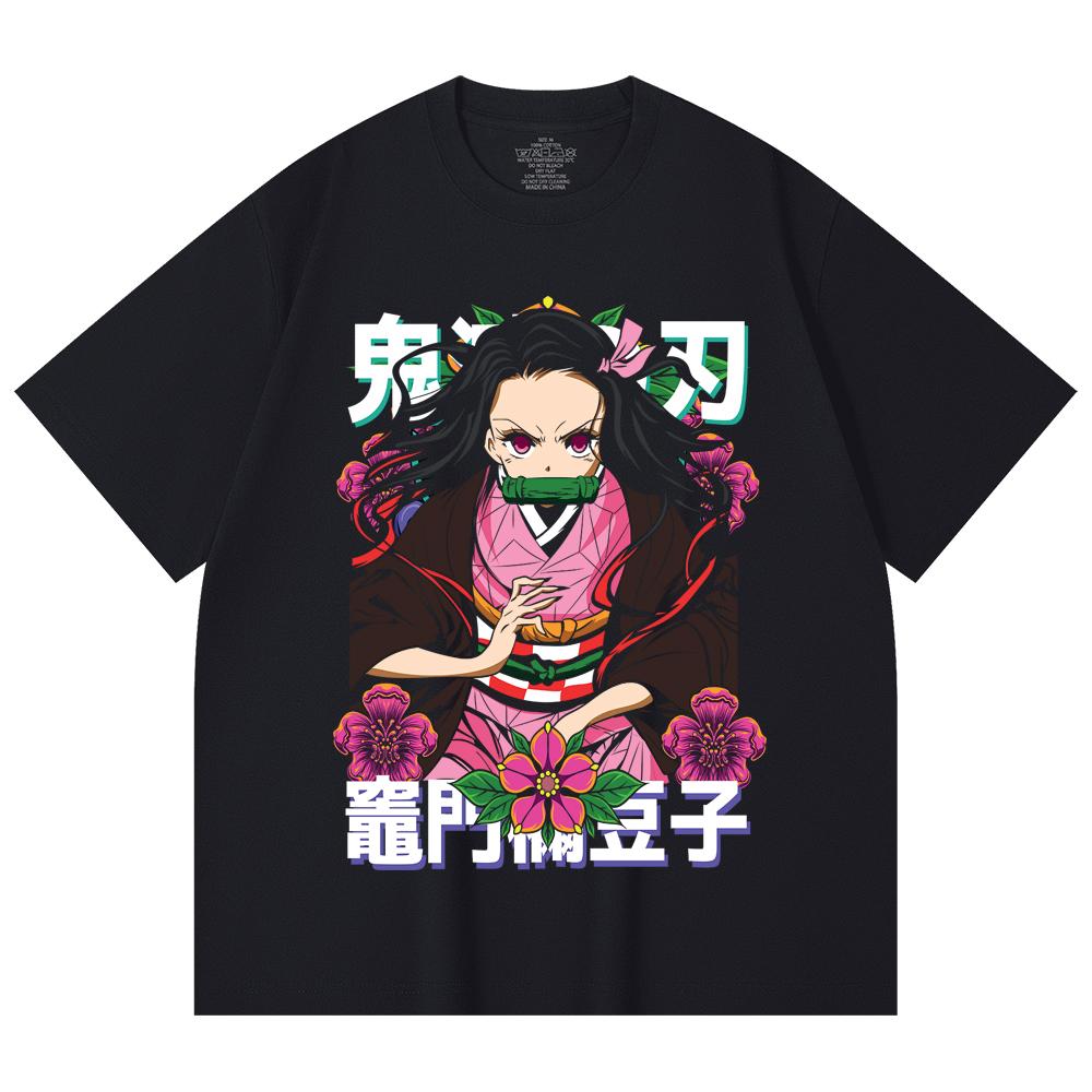 230 Gsm 100% Cotton Demon Slayer V70 Nezuko Flower Print Unisex Heavy Cotton T Shirt