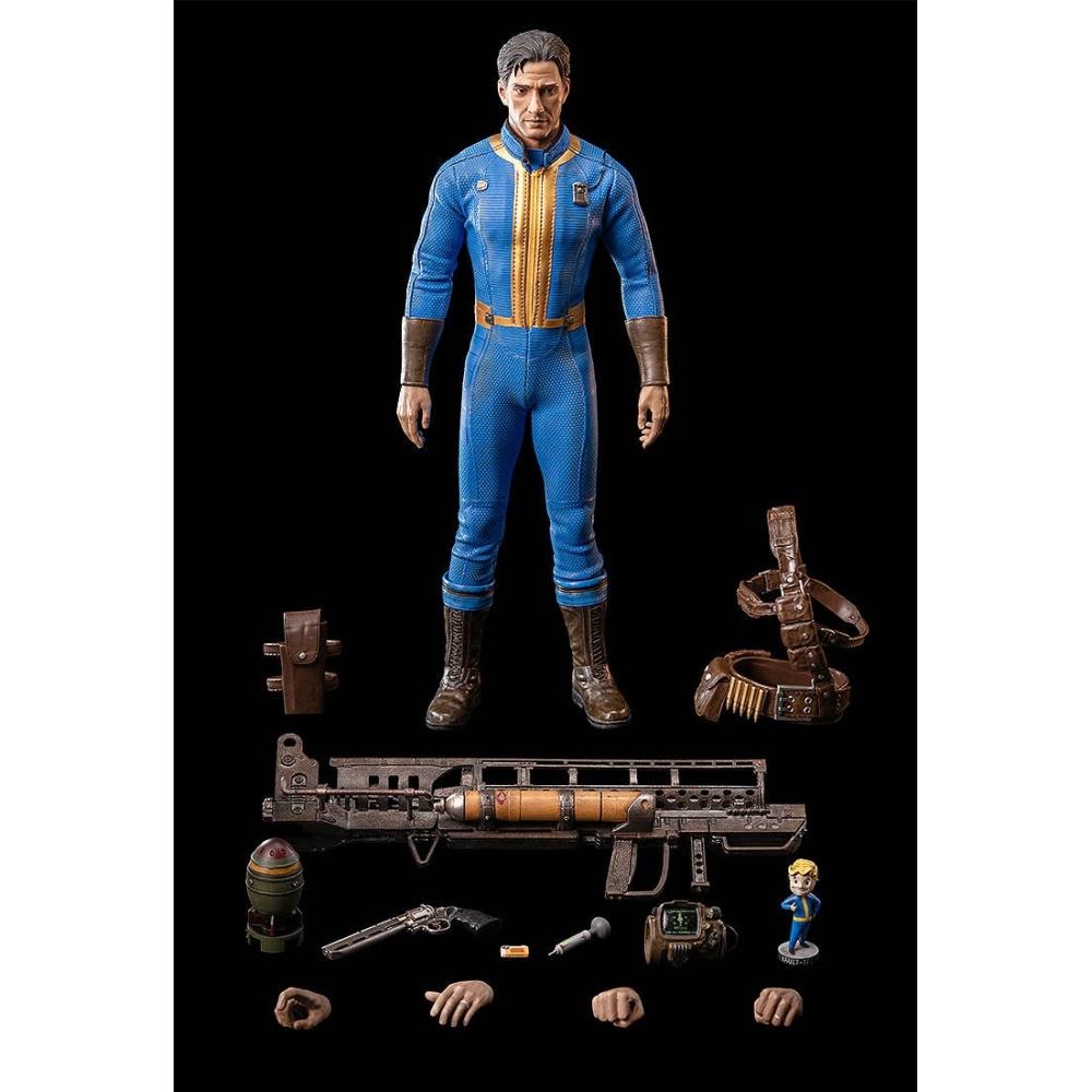 Fallout Fallout: Sole Survivor (Male) is a 1/6 scale action figure that meticulously recreates the character 'Sole Survivor' from the popular video game franchise 'Fallout.' The figure has approximately 32 points of articulation, allowing for a variety of poses, and it accurately reflects the clothing and details of the in-game character.