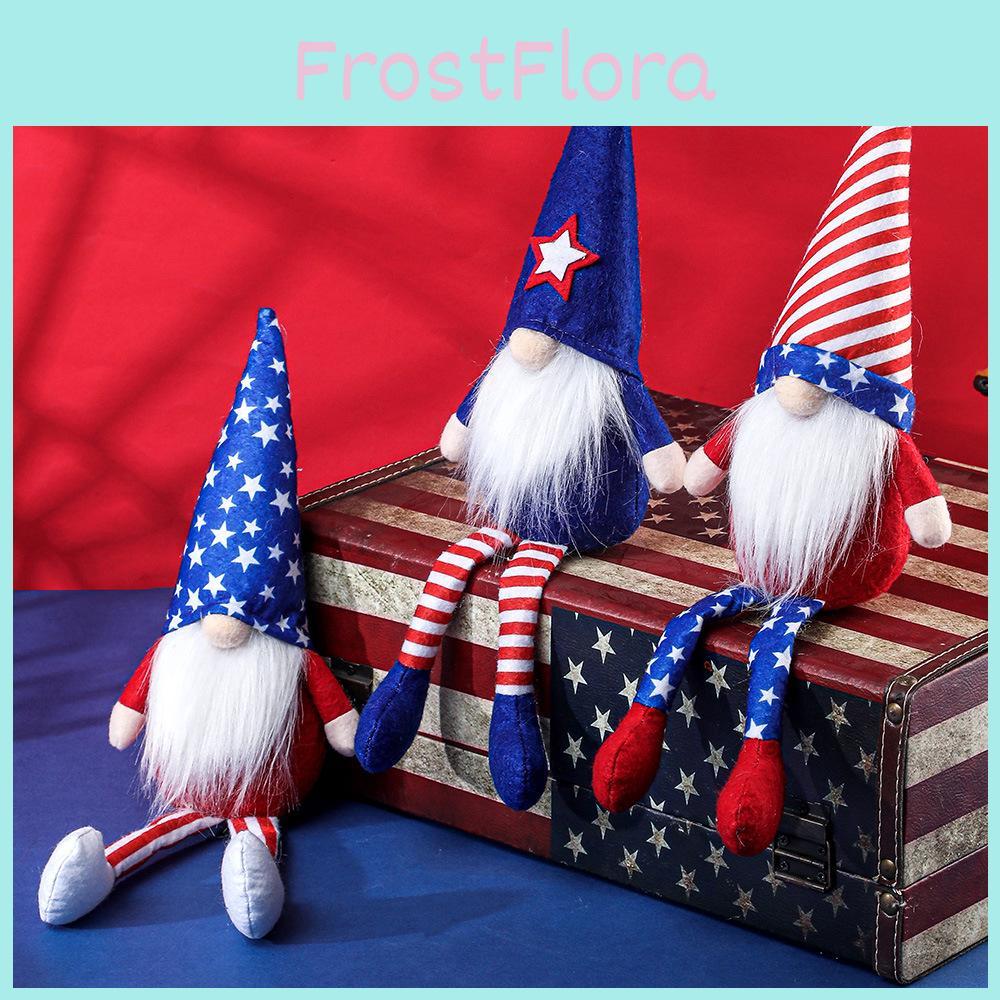 Entzückende Unabhängigkeitstag-Gnom-Figur Mit Buntem Hut Und Hängenden Beinen Für USA-Party-Dekoration