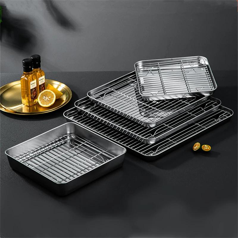 Quadratische Edelstahl-Backform Herausnehmbares Kuchenrost Abkühlgitter Küchen-Speiseplatte Antihaft-Grill Keks Ofen Backgeschirr