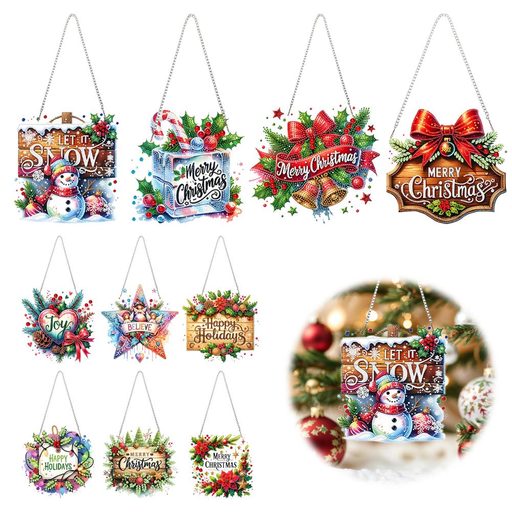 Christmas 2D Flat DIY Rhinestone Diamond Art Window Pendants Diamond Painting Set Special Shape Wall Decor for Home & Windows