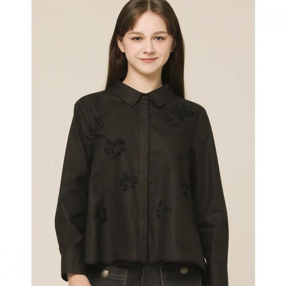 “This shirt is accented by harmoniously arranging flower lace embroidery on the front. The embroidery details reduce the monotony, and the silhouette that spreads naturally towards the hem completes the lightweight fit. It is a design that combines with a clean collar design to maintain not excessive decorativeness, and stands out for its flower lace embroidery details that can change the style even when alone.”