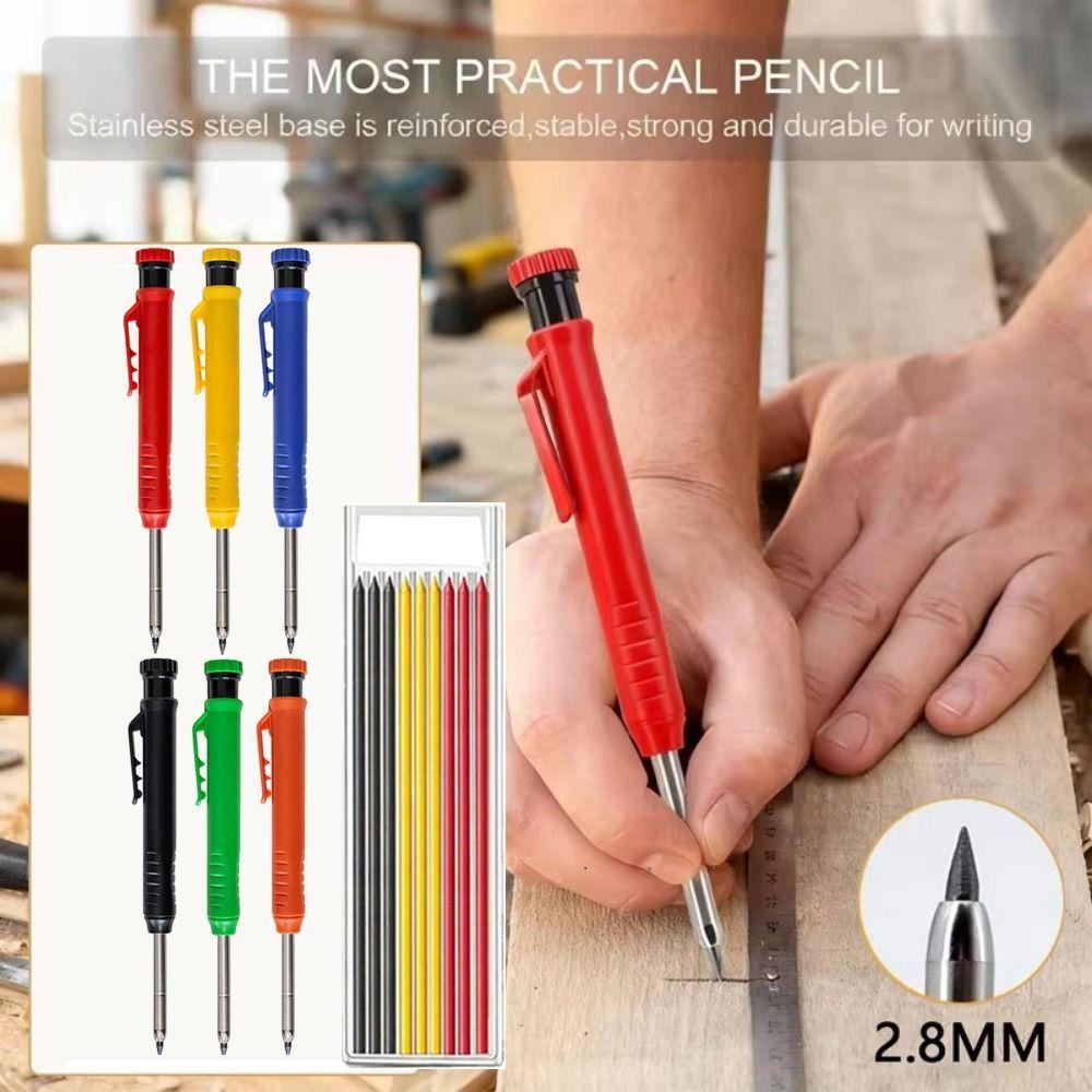 10Pcs with 9 Refills Lead core Mechanical Carpenter Pencil Deep Hole Marker Construction