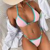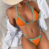 Damen Neongelb Kontrastbesatz Bikini-Set mit Perlenketten-Detail, Krepp-Textur Zweiteiliger Badeanzug