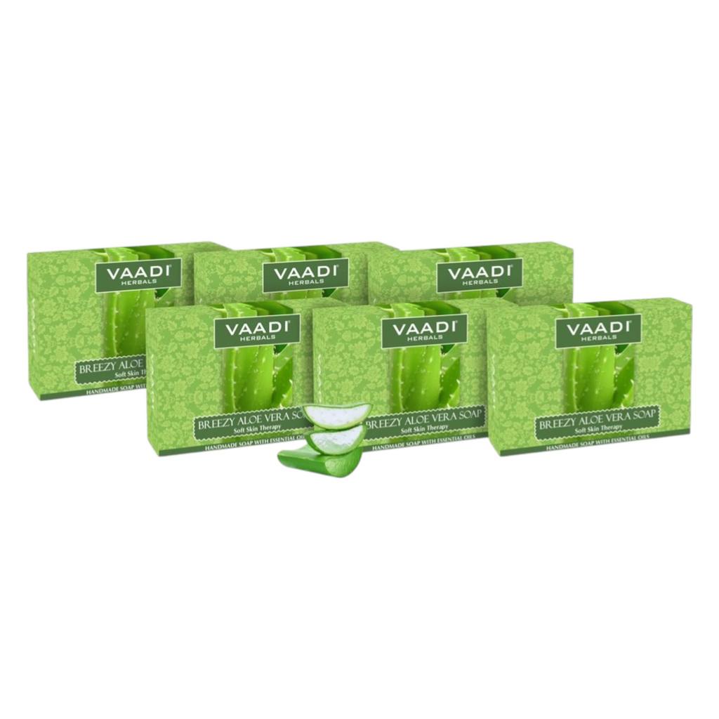 Vaadi Herbals Super Breezy Aloe Vera Soap Moisturizing Gentle Daily Bath Bar For Soft Fresh Skin 75 g X Pack Of 6